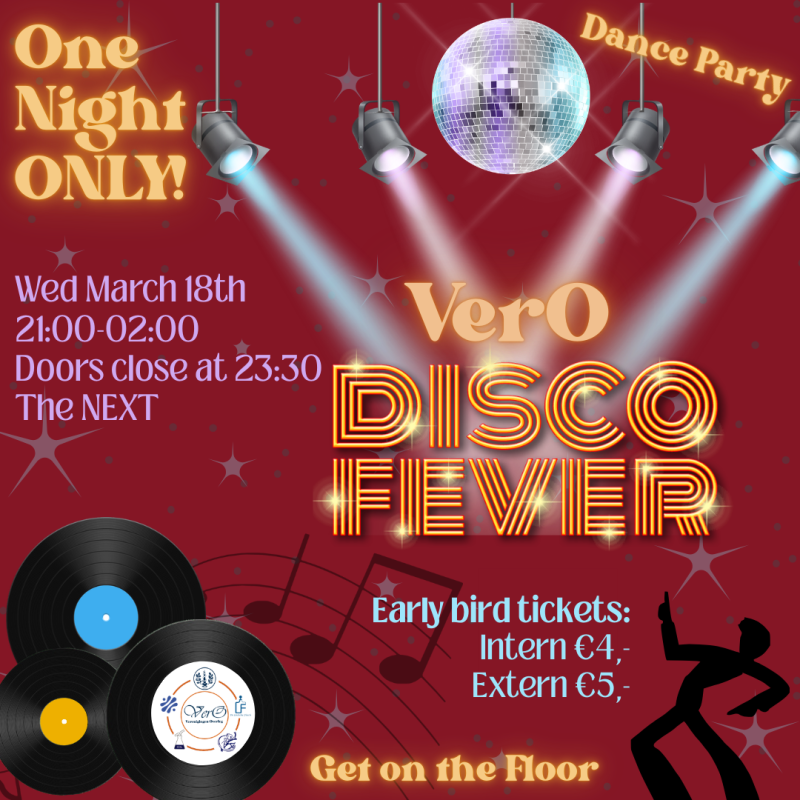 Want for One Night Only zal de NEXT omgetoverd worden in de VerO DiscO! Op woensdag 18 maart kunnen we samen een geweldig feest bouwen met als thema Disco Fever. Haal je glitter outfit of 70's pak uit de kast en laat je beste moves zien op de dansvloer.